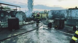 Acolo se află mai multe containere în care sunt depozitate reziduuri petroliere.